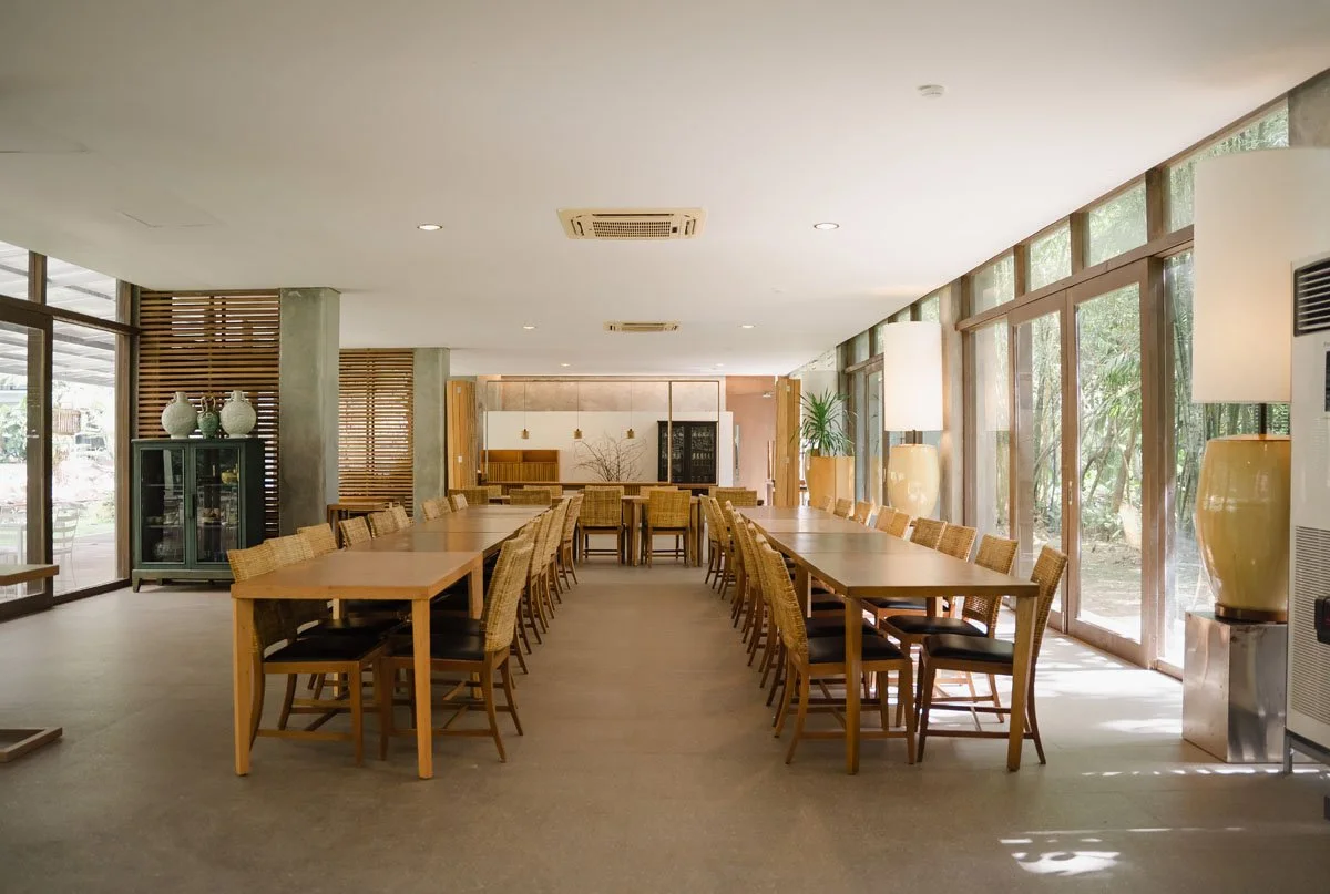 Within the lush, tropical landscape at Siama is our Event Hall—a sophisticated blend of minimalist design and warm, artisanal craftsmanship.